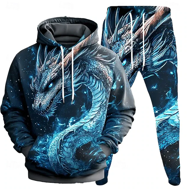 3D Blue Dragon Hoodie and Jogger Set – Fierce Streetwear Style