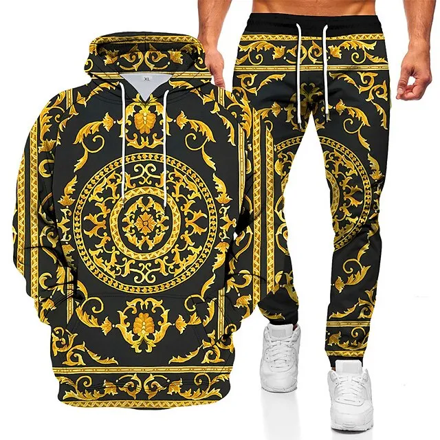 Make a statement with the Black Gold Baroque 3D Hoodie & Jogger Set – a streetwear look that fuses bold design with luxury vibes.