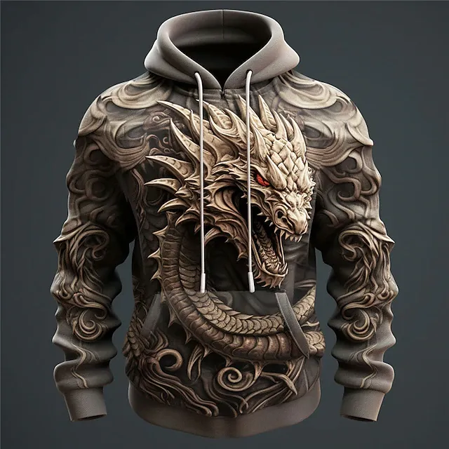 Dark Gray 3D Dragon Hoodie – Fierce Streetwear for Bold Personalities