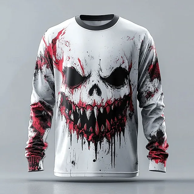 Make a killer entrance this Halloween with the 3D Bloody Skull Long Sleeve Shirt, blending horror and high-impact street style.