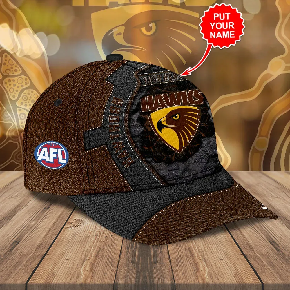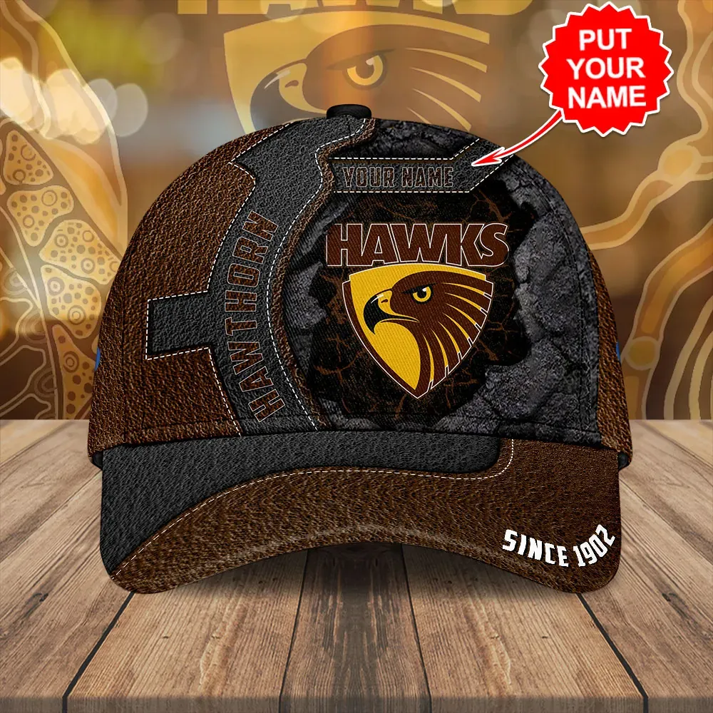 This Hawthorn Hawks custom 3D mesh cap is a bold statement piece for true fans. With dominant brown and black tones, striking logo details, and the option to add your own name, it blends style, sport, and individuality.