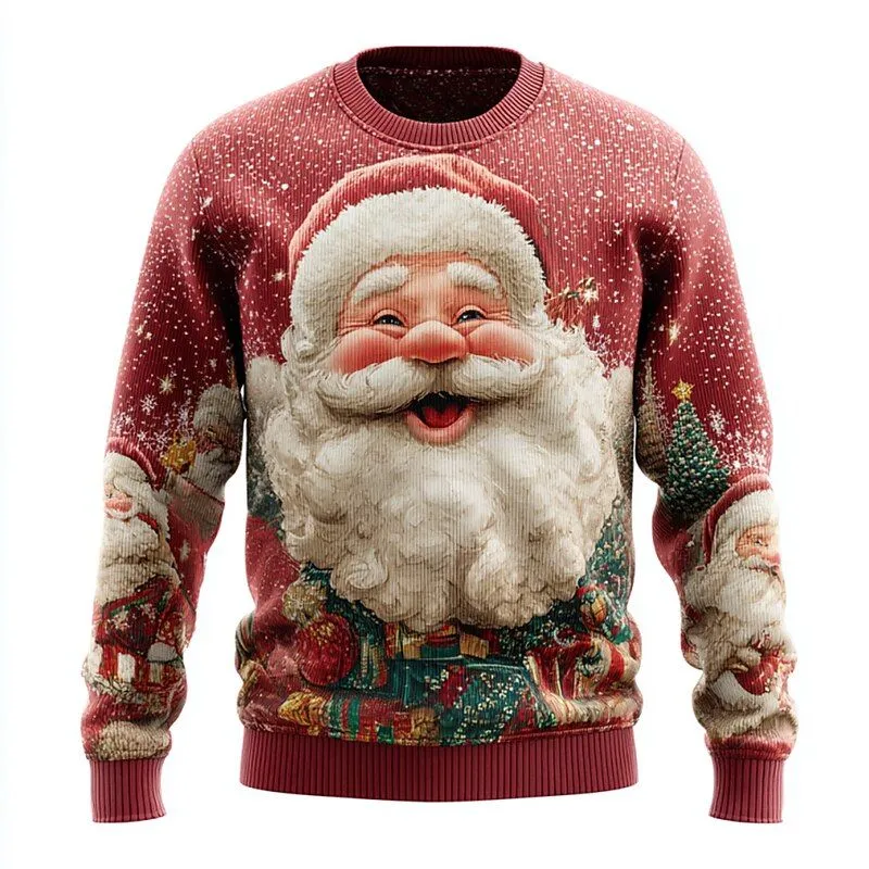 Bring joy and warmth to your winter wardrobe with this Red Santa Claus 3D Christmas Sweater, a festive must-have that blends cheerful art, cozy comfort, and timeless holiday charm.